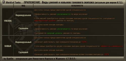 по видам умений и навыков танкового экипажа и их особенностям.